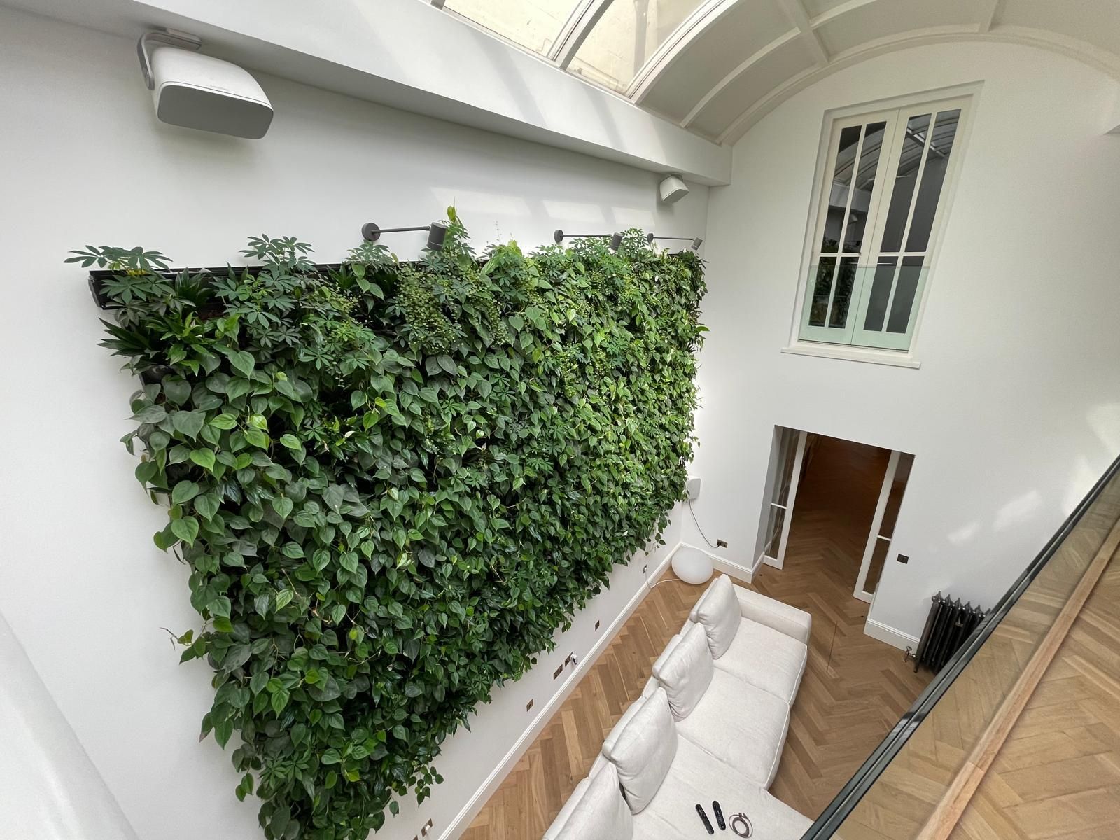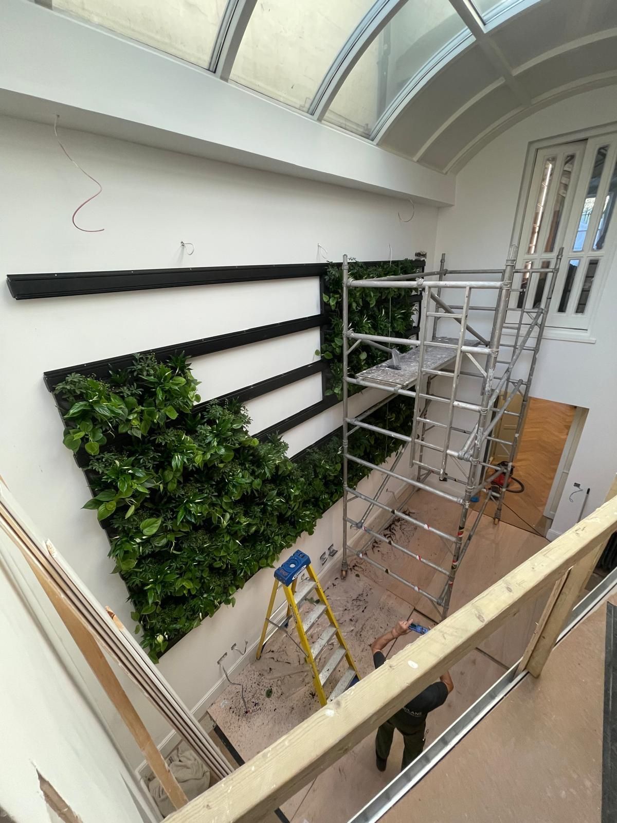Specialist internal green wall installation with a boosted cold mains supply, dosing point and drainage to allow this beautiful feature to flourish.